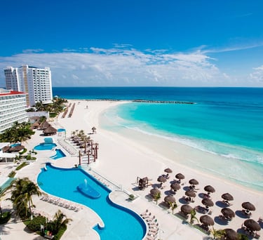 Disfruta playas de arena blanca, mar turquesa y una vida nocturna llena de energía. Reserva hoteles todo incluido en Cancún desde $2,499 MXN por noche.